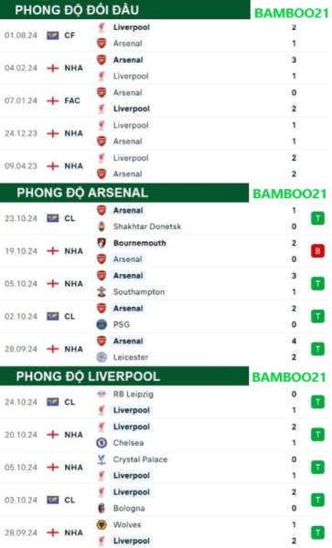 Phong độ thi đấu gần đây Arsenal vs Liverpool